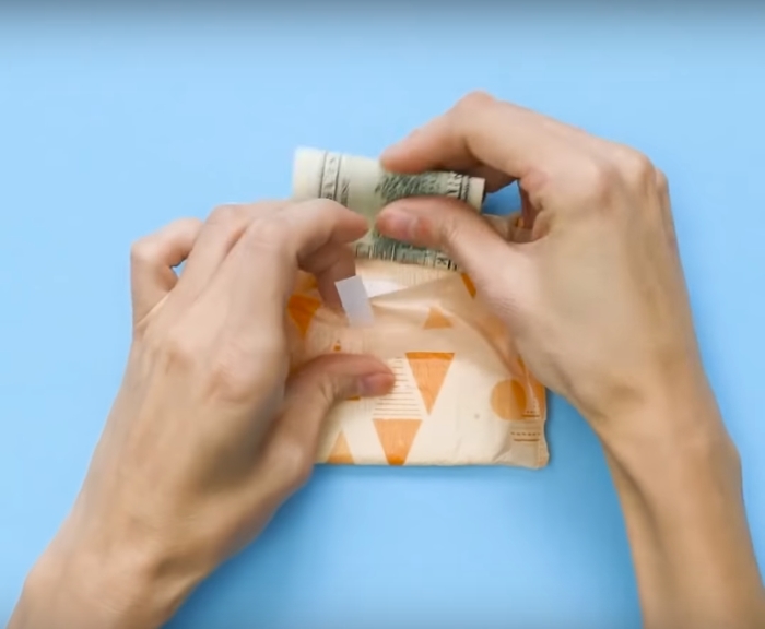 В таком месте точно никто не догадается искать ваши деньги. Да и доступ к ним будет удобный и простой, а упаковку с жевательными резинками можно всегда держать под рукой: в кармане, сумке или даже как закладку в книге. Чтобы все получилось как надо, необходимо правильно сложить деньги и аккуратно положить их в фольгу.