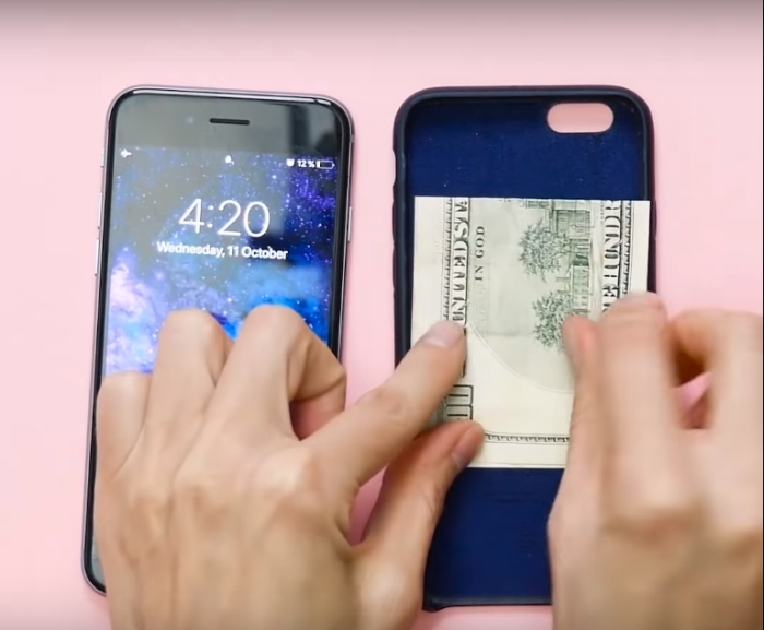 Этот лайфхак особенно удобно использовать когда вы идете отдыхать на пляж, а не хочется с собой брать много вещей. Можно просто положить смартфон в карман или держать в руке, но и деньги будут при себе. Достаточно сложить и спрятать их под чехол телефона.