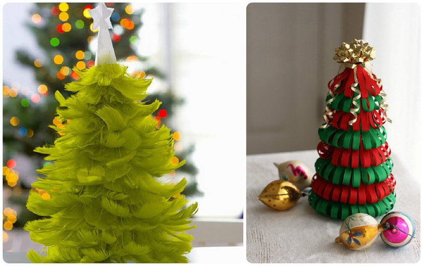 Елку можно легко соорудить своими руками из самых разных подручных материалов.