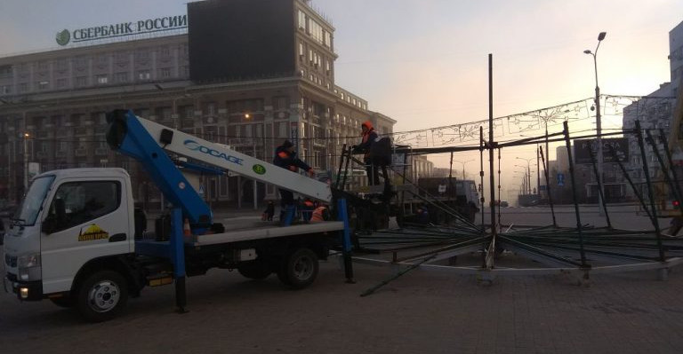 Начаты работы по установке остова елки в центре города – на площади Ленина.