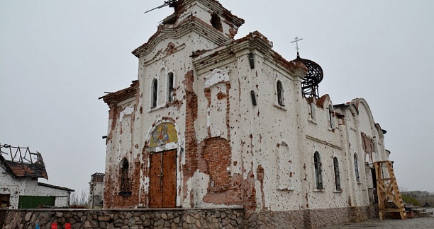 В разрушенном обстрелами Свято-Иверском монастыре прошла праздничная литургия