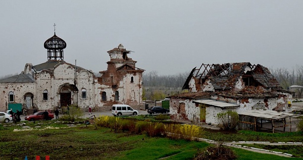Свято-Иверский женский монастырь был построен вблизи аэропорта в Киевском районе Донецка в 2001 году. Осенью 2014 года святыня была сильно повреждена обстрелами. Впервые после закрытия обители и эвакуации монахинь богослужение здесь было совершено в феврале 2016 года.