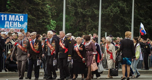 Более тысячи человек прошли строем по главной улице Донецка во время парада, посвященного 72-й годовщине победы в Великой Отечественной войне.