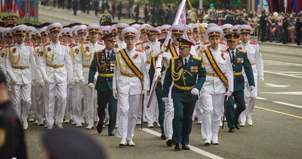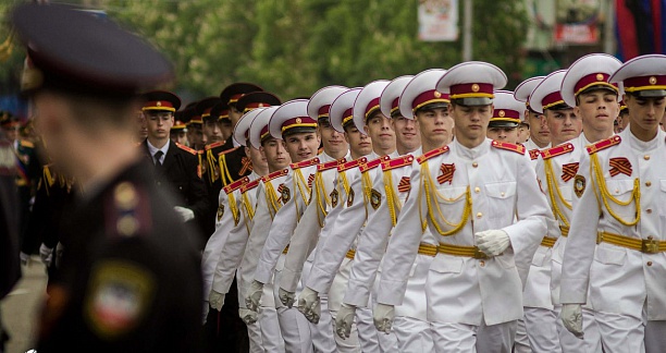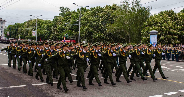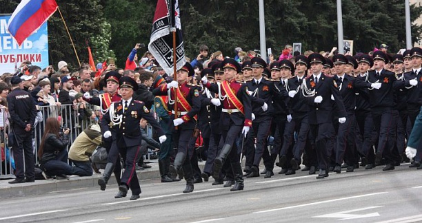 Как сообщает официальный сайт ДНР, в шествии приняли участие 15 парадных расчетов - это курсанты Донецкого высшего общевойскового командного училища, воспитанники Донецкого лицея-интерната с усиленной военно-физической подготовкой им. Г.Т. Берегового, Донецкой академии внутренних дел, военнослужащие ДНР, а также спасатели МЧС республики.