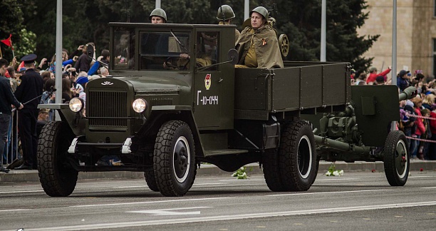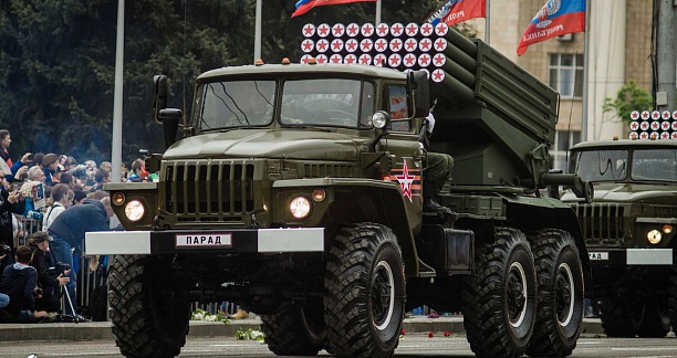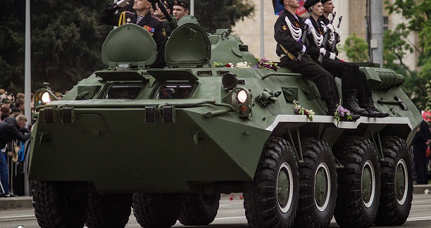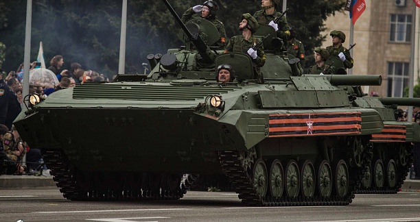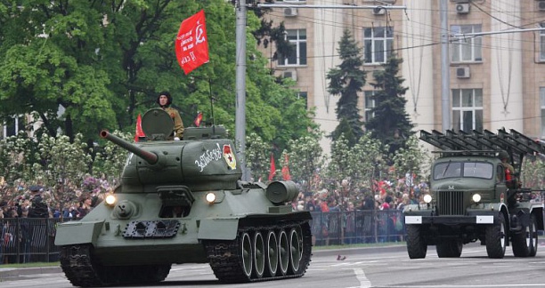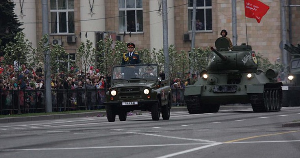 Военный парад по случаю 72-й годовщины Великой Победы начался в центре Донецка