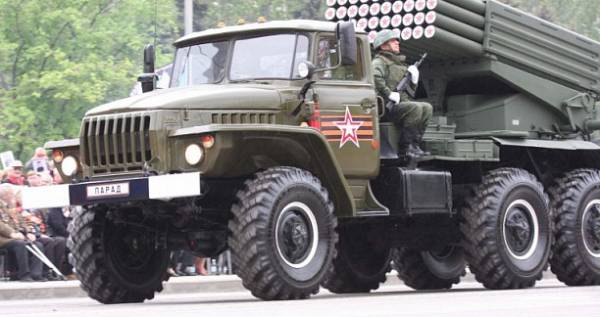 Колонну военной техники в этом году возглавили советский средний танк Т-34-85, а также боевые машины военной поры БМ-13 «Катюша» и ЗиС-5 с противотанковой пушкой ЗиС-3. Также по улице Донецка прошла и современная военная техника - основные танки Т-72 и Т-64, бронетранспортеры БТР-80, боевые машины пехоты БМП-1 и БМП-2, самоходные артиллерийские установки 2С1 «Гвоздика», зенитно-ракетные комплексы «Стрела-10», артиллерийские системы МТ-12 «Рапира», «Мста-Б», Д-30, 120-мм полковые минометы, зенитные установки ЗУ-23-2.