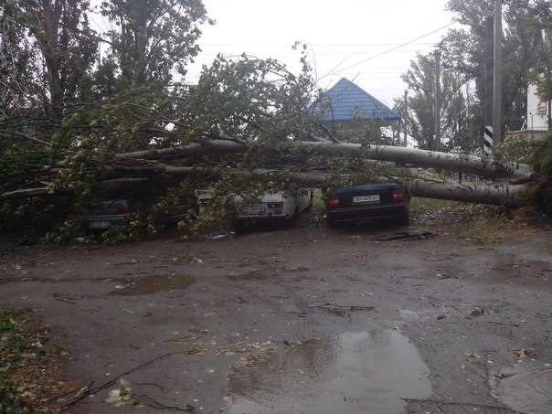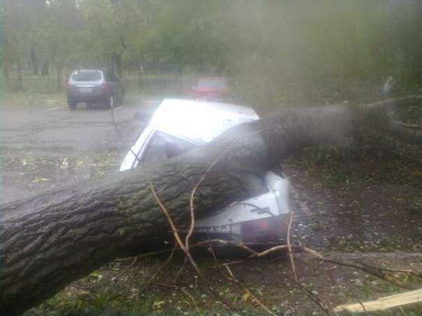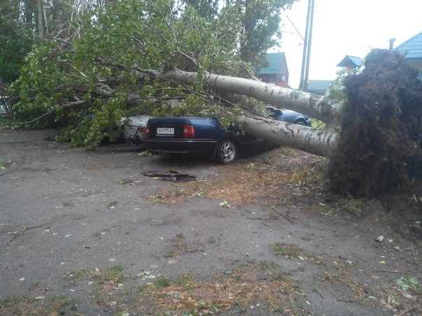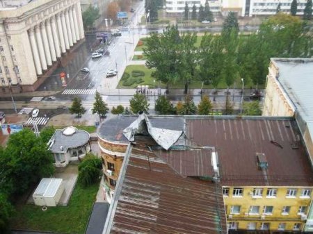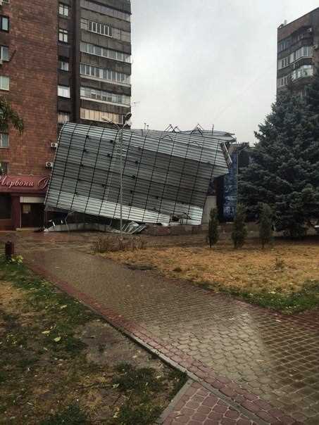 В обед из за сильного ветра в Донецке начали падать деревья и рвать крыши домов.