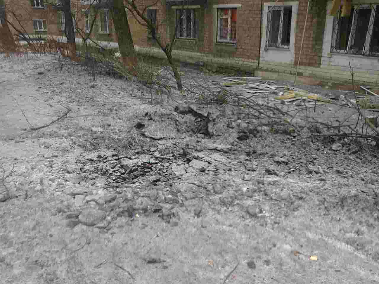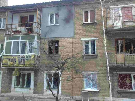 - ул. Шахтерской Славы, 11 - попадание в крышу (средний подъезд), снаряд не разорвался