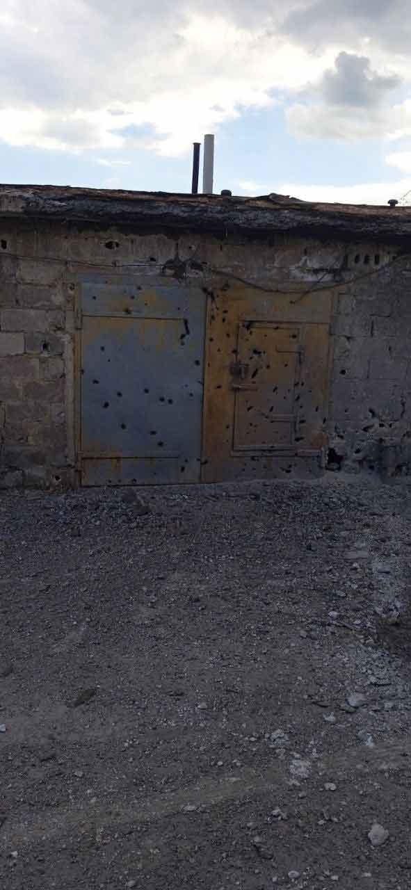 - ул. Бирюзова (АГК "Бирюза-2") - попадание возле гаража № 585, осколками посечены ворота и стены нескольких гаражных боксов;