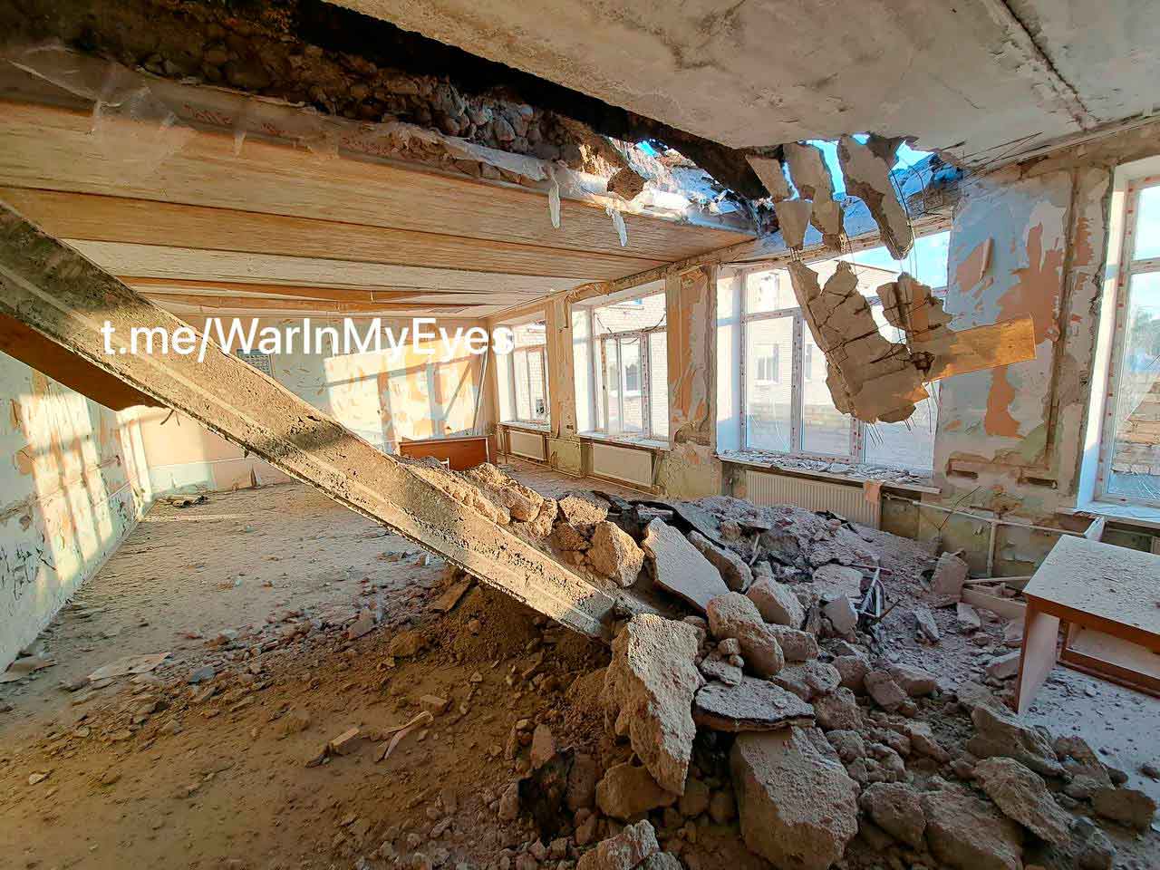 Последствия обстрела школы №41 в Куйбышевском районе Донецка