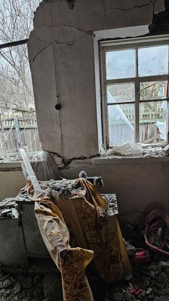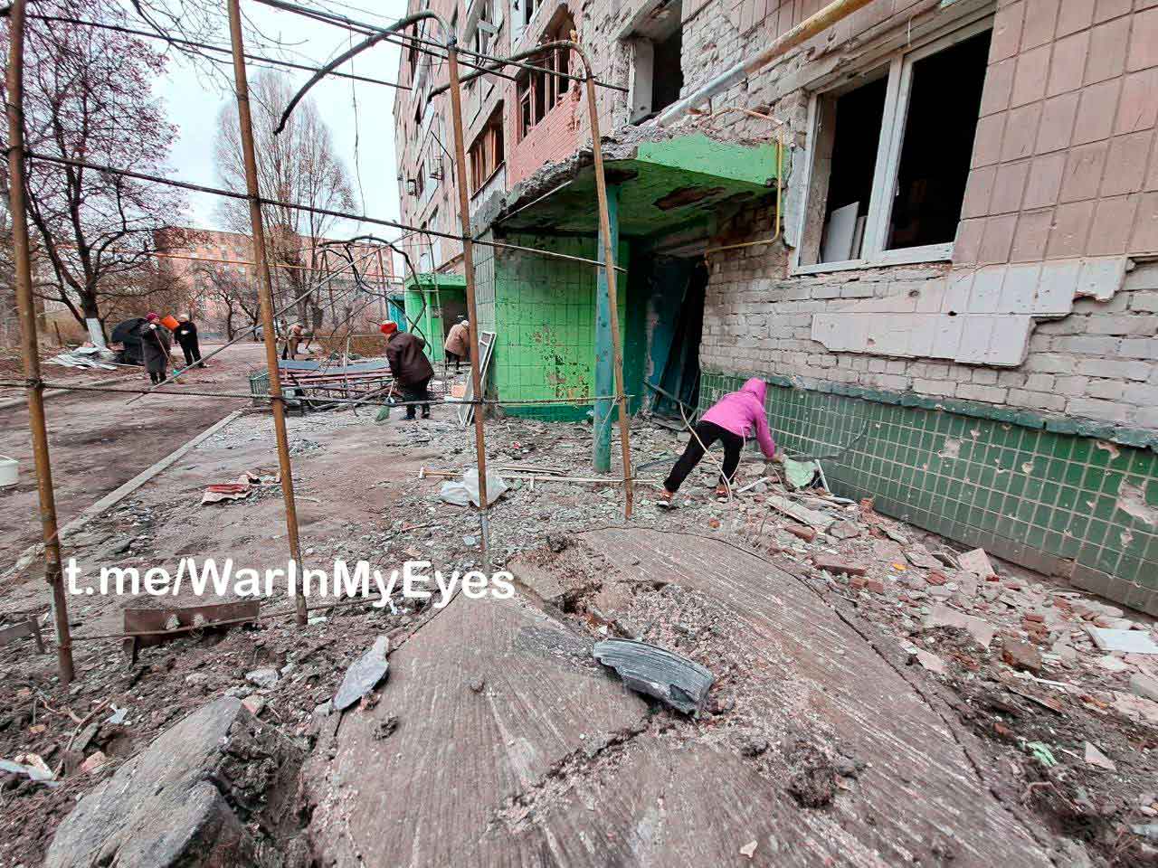 ул. Хлебозаводская, 23 (Никитовский район Горловки), поврежденный в результате прямого попадания снаряда