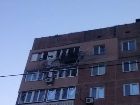 Попадание снаряда в жилой дом по улице Ленкоранская 17 вечером.