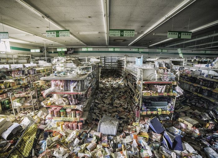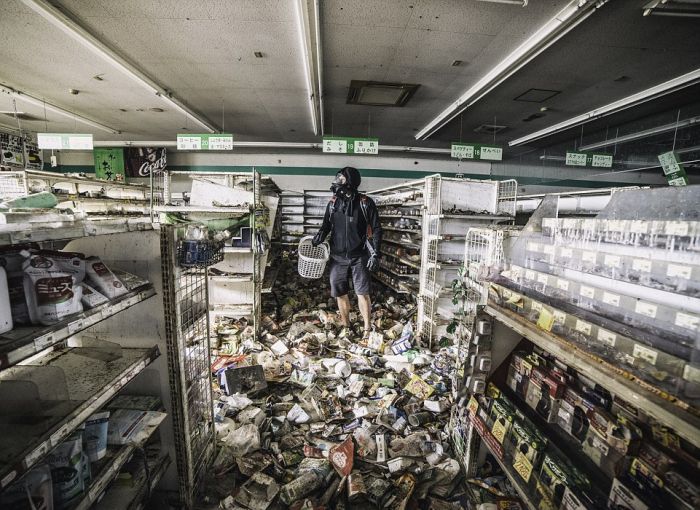 В прошлом месяце малазийский фотограф Кео Ви Лунг (Keow Wee Loong) побывал в зоне отчуждения АЭС Фукусима. Он посетил четыре покинутых населенных пункта, где снимал пустые улицы, заброшенные машины и безлюдные магазины, на прилавках которых еще остаются товары пятилетней давности. Снимки, сделанные